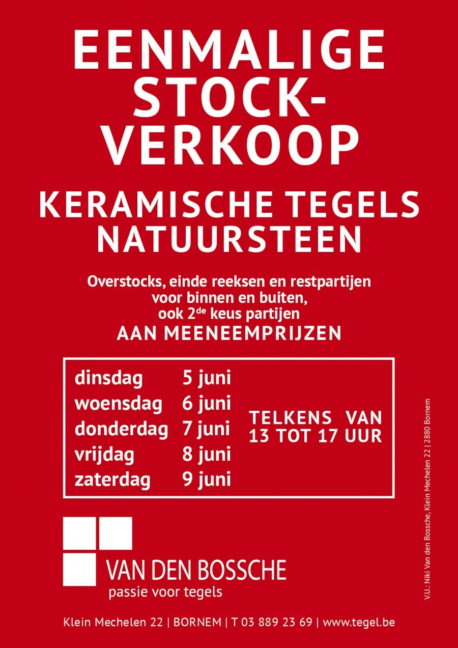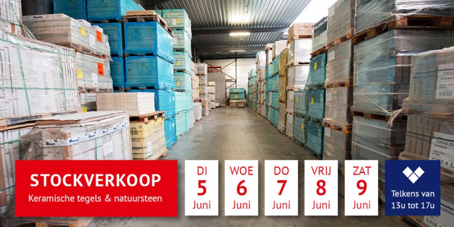 Cherchez-vous des carreaux de qualité à prix discount? Venez à la vente d'actions chez Van den Bossche! Du 5 au 9 juin, de 13h à 17h dans la tente à côté de notre entrepôt. Profitez de milliers de mètres carrés de carreaux de céramique, de mosaïque et de pierre naturelle à partir de 9,99 euros par m2, TVA comprise.