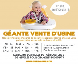 Vente d’usine sur une surface de 1500 m2. Vous trouverez tout pour votre bébé à des prix exceptionnels. Ne manquez pas cette vente !